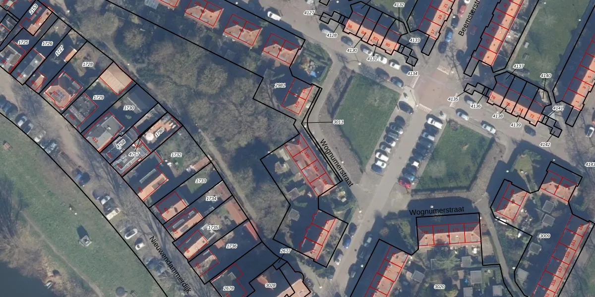 Het perceel waarop Wognumerstraat 187 staat heeft een oppervlakte van 2169 m². Dit is een zeer groot perceel. De perceeloppervlakte wordt geregistreerd door het Kadaster. Gedetailleerde informatie over de maten van dit perceel kunt u vinden in het rapport Kadastrale kaart met maatvoering van Wognumerstraat 187.