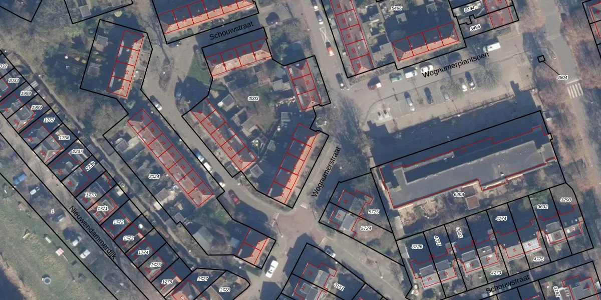 Het perceel waarop Wognumerstraat 19 staat heeft een oppervlakte van 1757 m². Dit is een zeer groot perceel. De perceeloppervlakte wordt geregistreerd door het Kadaster. Gedetailleerde informatie over de maten van dit perceel kunt u vinden in het rapport Kadastrale kaart met maatvoering van Wognumerstraat 19.