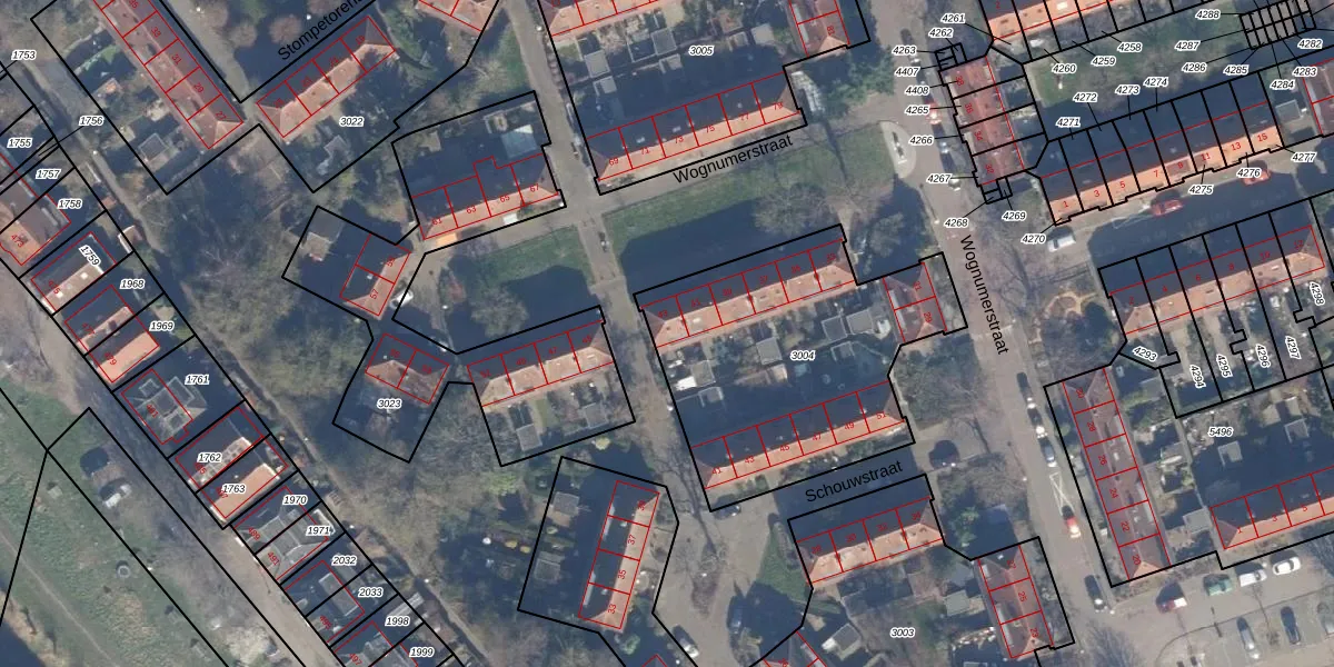 Het perceel waarop Wognumerstraat 43 staat heeft een oppervlakte van 1248 m². Dit is een zeer groot perceel. De perceeloppervlakte wordt geregistreerd door het Kadaster. Gedetailleerde informatie over de maten van dit perceel kunt u vinden in het rapport Kadastrale kaart met maatvoering van Wognumerstraat 43.