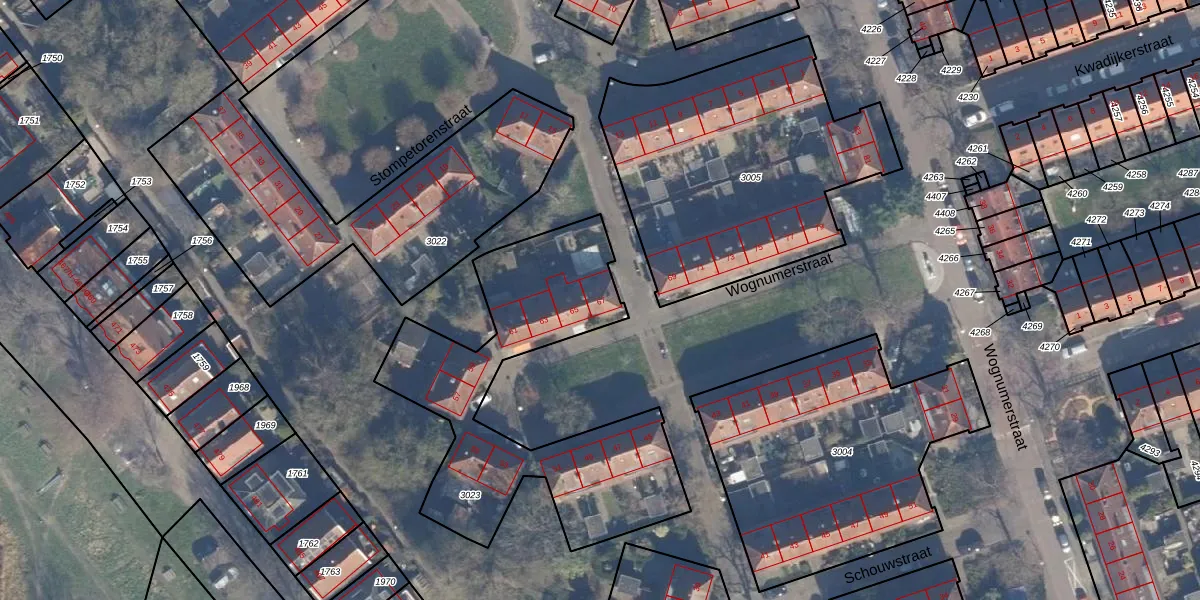 Het perceel waarop Wognumerstraat 67 staat heeft een oppervlakte van 1243 m². Dit is een zeer groot perceel. De perceeloppervlakte wordt geregistreerd door het Kadaster. Gedetailleerde informatie over de maten van dit perceel kunt u vinden in het rapport Kadastrale kaart met maatvoering van Wognumerstraat 67.