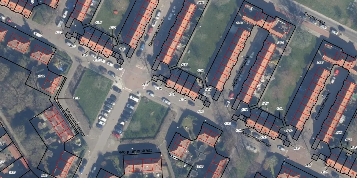 Gebruik de zoekbalk of klik op een perceel voor informatie over de adressen binnen dit perceel.
