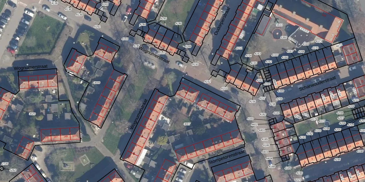 Het perceel waarop Wognumerstraat 99 staat heeft een oppervlakte van 2449 m². Dit is een zeer groot perceel. De perceeloppervlakte wordt geregistreerd door het Kadaster. Gedetailleerde informatie over de maten van dit perceel kunt u vinden in het rapport Kadastrale kaart met maatvoering van Wognumerstraat 99.