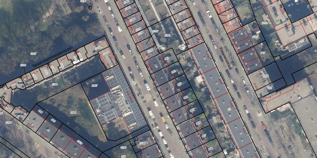 Het adres ligt op het perceel ASD20-X-962, dat zich in de kadastrale gemeente Amsterdam bevindt. Het perceel is kleiner dan gemiddeld in Amsterdam. Het perceel is 181 m² groot, terwijl het gemiddelde ligt op 466,51 m². De grootste perceeloppervlakte in de kadastrale gemeente is 3,6 ha. De kleinste oppervlakte bedraagt 0 m². Er zijn 8 adressen aanwezig op het perceel. De huidige grenzen van het perceel zijn digitaal in de Basisregistratie Kadaster (BRK) geregistreerd op 23-11-2006.