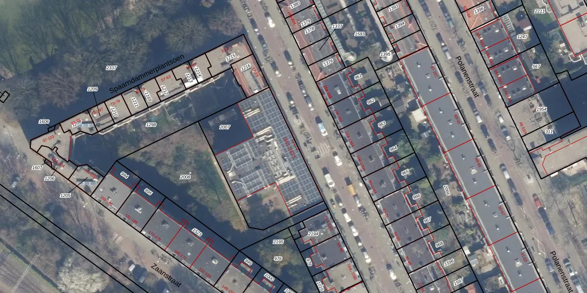 Het adres is gelegen op perceel 2007 in de sectie X en de kadastrale gemeente Amsterdam. De kadastrale aanduiding is aldus ASD20-X-2007. De oppervlakte van het perceel is 1154 m². Dat is groter dan gemiddeld in Amsterdam, waar de gemiddelde perceeloppervlakte op 466,51 m² ligt. Het grootste perceel in de kadastrale gemeente is 3,6 ha. Het kleinste perceel heeft een oppervlakte van 0 m². Er zijn 96 adressen aanwezig op het perceel. De laatste wijziging in het de Basisregistratie Kadaster (BRK) was op 23-11-2006.