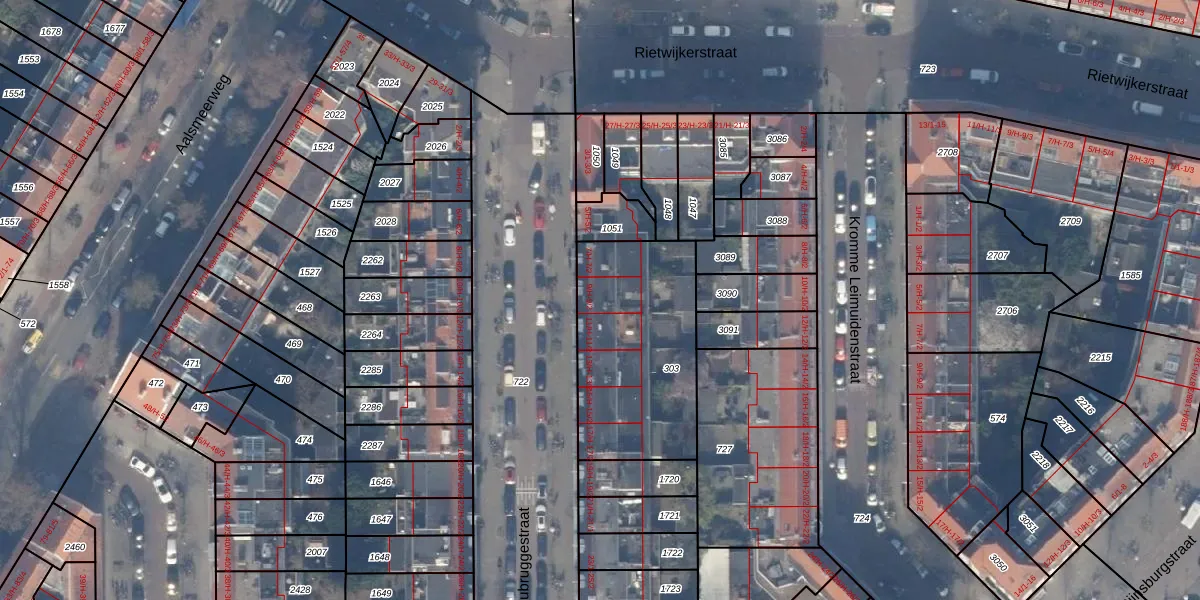Het perceel waarop Woubruggestraat 9-1 staat heeft een oppervlakte van 732 m². Dit is een groot perceel. De perceeloppervlakte wordt geregistreerd door het Kadaster. Gedetailleerde informatie over de maten van dit perceel kunt u vinden in het rapport Kadastrale kaart met maatvoering van Woubruggestraat 9-1.