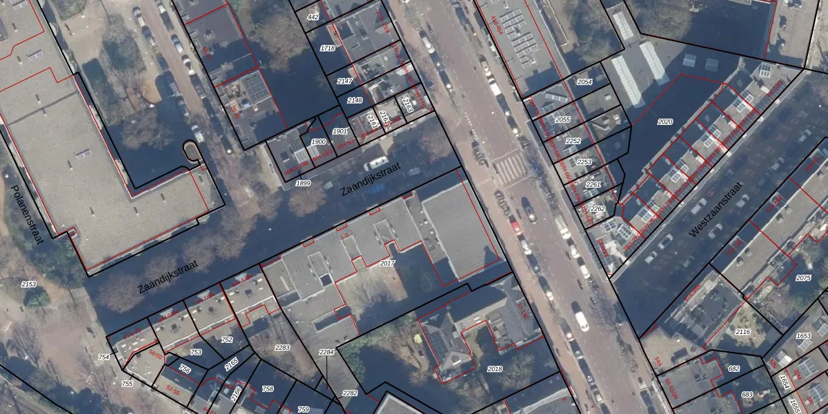 Het perceel waarop Zaandijkstraat 1 staat heeft een oppervlakte van 1624 m². Dit is een zeer groot perceel. De perceeloppervlakte wordt geregistreerd door het Kadaster. Gedetailleerde informatie over de maten van dit perceel kunt u vinden in het rapport Kadastrale kaart met maatvoering van Zaandijkstraat 1.