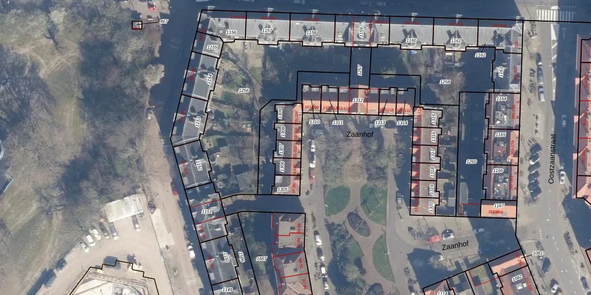 Het perceel waarop Zaanhof 102 staat heeft een oppervlakte van 53 m². Dit is een klein perceel. De perceeloppervlakte wordt geregistreerd door het Kadaster. Gedetailleerde informatie over de maten van dit perceel kunt u vinden in het rapport Kadastrale kaart met maatvoering van Zaanhof 102.