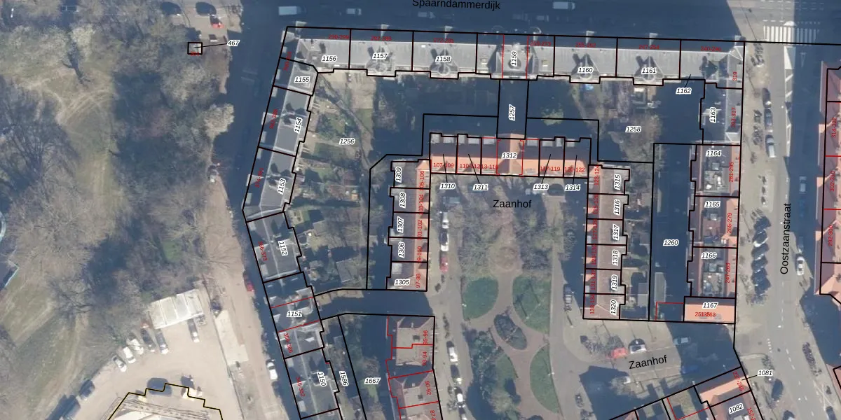Zaanhof 103 is gelegen op kadastraal perceel ASD20X1308. Deze kadastrale aanduiding is uniek en wordt gebruikt door het Kadaster om eigendomsrechten en andere zakelijke rechten vast te leggen. Het perceel maakt onderdeel uit van de kadastrale gemeente Amsterdam.