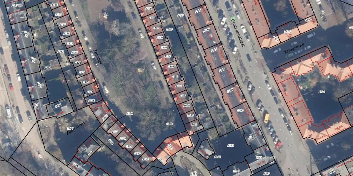 Het perceel waarop Zaanhof 27 staat heeft een oppervlakte van 53 m². Dit is een klein perceel. De perceeloppervlakte wordt geregistreerd door het Kadaster. Gedetailleerde informatie over de maten van dit perceel kunt u vinden in het rapport Kadastrale kaart met maatvoering van Zaanhof 27.