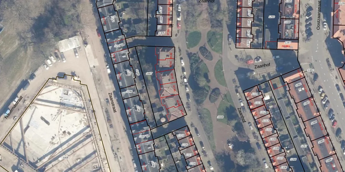 Het perceel waarop Zaanhof 89 staat heeft een oppervlakte van 837 m². Dit is een groot perceel. De perceeloppervlakte wordt geregistreerd door het Kadaster. Gedetailleerde informatie over de maten van dit perceel kunt u vinden in het rapport Kadastrale kaart met maatvoering van Zaanhof 89.