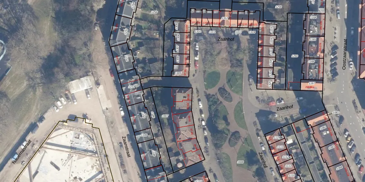 Het perceel waarop Zaanhof 96 staat heeft een oppervlakte van 837 m². Dit is een groot perceel. De perceeloppervlakte wordt geregistreerd door het Kadaster. Gedetailleerde informatie over de maten van dit perceel kunt u vinden in het rapport Kadastrale kaart met maatvoering van Zaanhof 96.