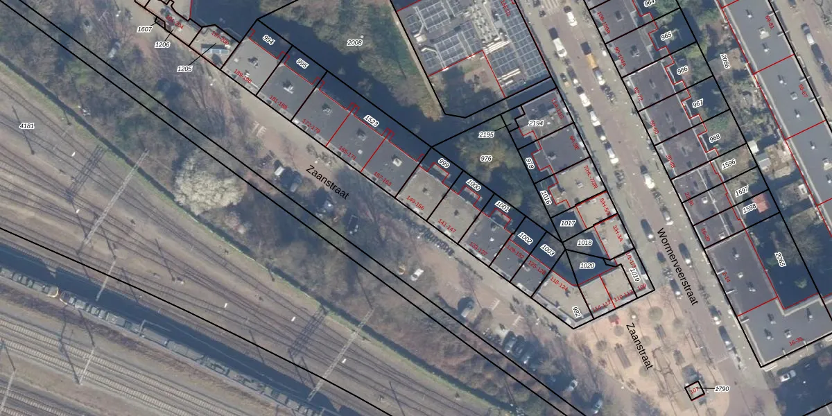Zaanstraat 156 is gelegen op kadastraal perceel ASD20X999. Deze kadastrale aanduiding is uniek en wordt gebruikt door het Kadaster om eigendomsrechten en andere zakelijke rechten vast te leggen. Het perceel maakt onderdeel uit van de kadastrale gemeente Amsterdam.