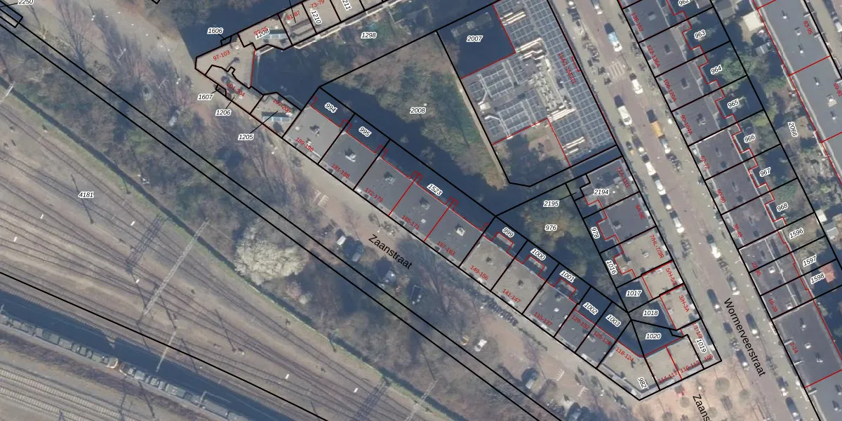 Zaanstraat 167 is gelegen op kadastraal perceel ASD20X1523. Deze kadastrale aanduiding is uniek en wordt gebruikt door het Kadaster om eigendomsrechten en andere zakelijke rechten vast te leggen. Het perceel maakt onderdeel uit van de kadastrale gemeente Amsterdam.