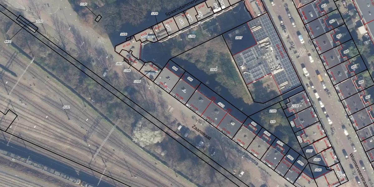 Zaanstraat 183 is gelegen op kadastraal perceel ASD20X995. Deze kadastrale aanduiding is uniek en wordt gebruikt door het Kadaster om eigendomsrechten en andere zakelijke rechten vast te leggen. Het perceel maakt onderdeel uit van de kadastrale gemeente Amsterdam.