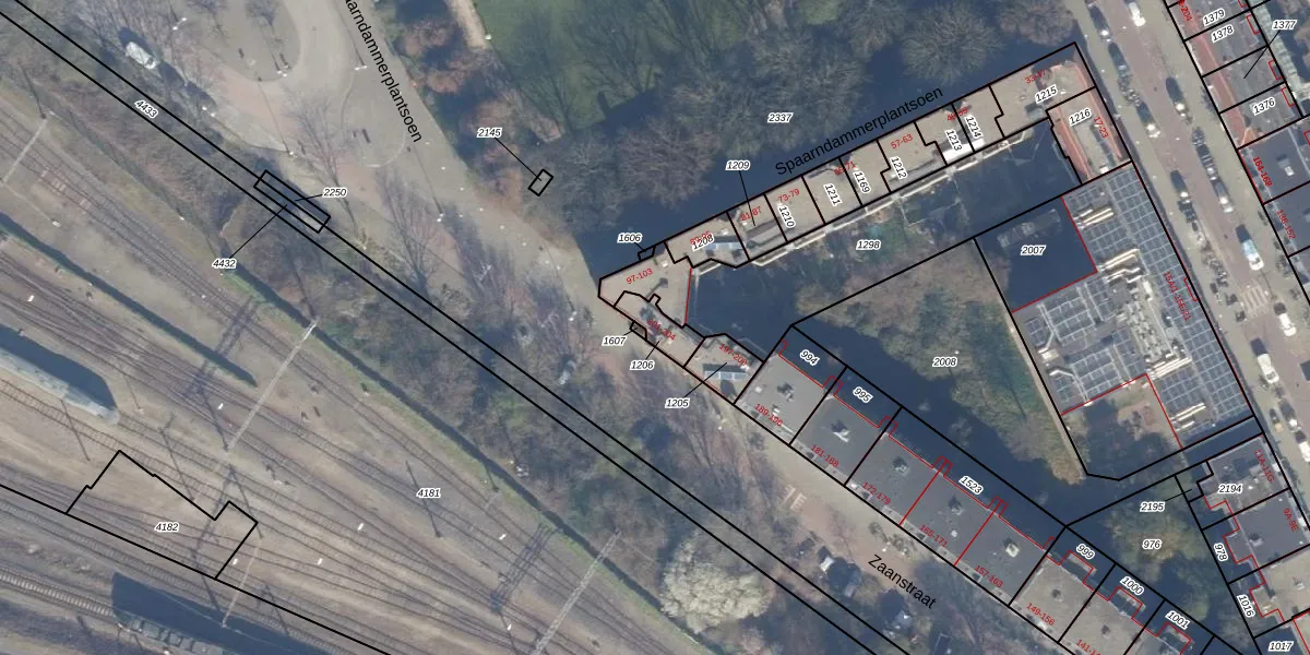 Zaanstraat 202 is gelegen op kadastraal perceel ASD20X1206. Deze kadastrale aanduiding is uniek en wordt gebruikt door het Kadaster om eigendomsrechten en andere zakelijke rechten vast te leggen. Het perceel maakt onderdeel uit van de kadastrale gemeente Amsterdam.