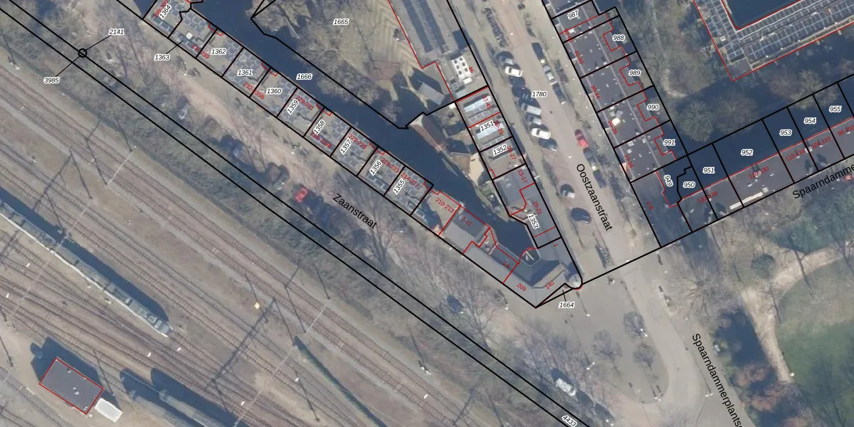 Zaanstraat 213 is gelegen op kadastraal perceel ASD20X1666. Deze kadastrale aanduiding is uniek en wordt gebruikt door het Kadaster om eigendomsrechten en andere zakelijke rechten vast te leggen. Het perceel maakt onderdeel uit van de kadastrale gemeente Amsterdam.