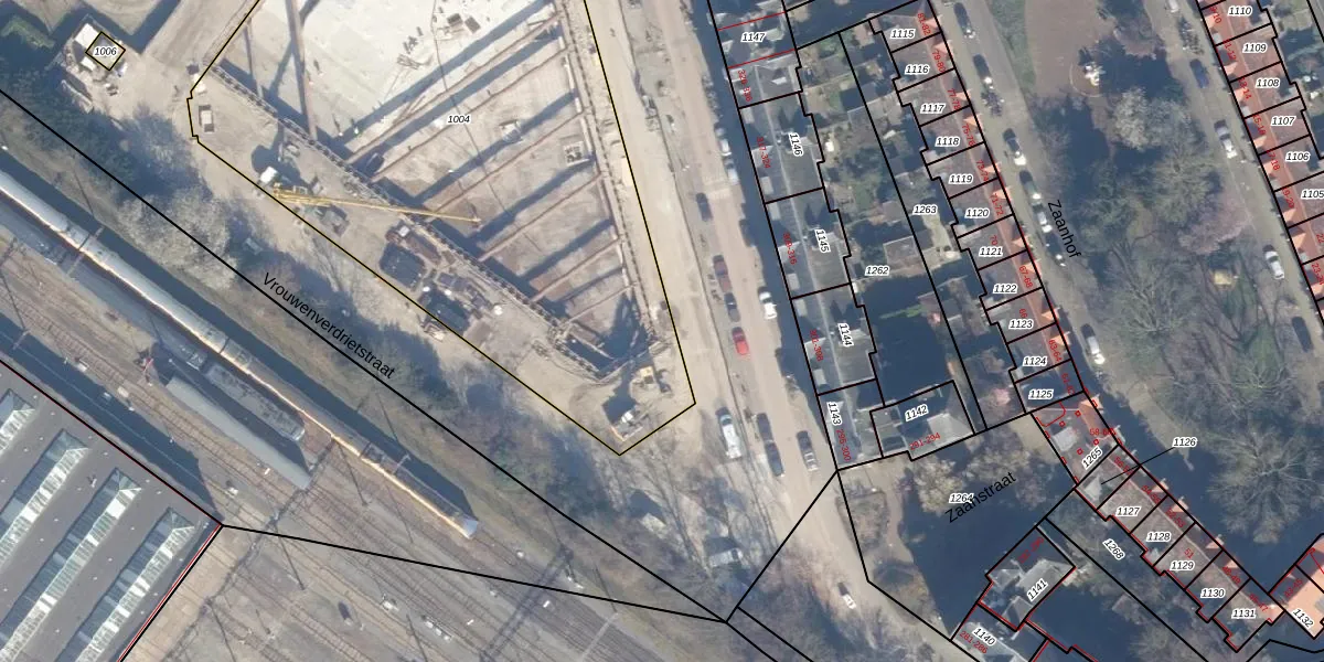 Het perceel waarop Zaanstraat 437 staat heeft een oppervlakte van 4041 m². Dit is een zeer groot perceel. De perceeloppervlakte wordt geregistreerd door het Kadaster. Gedetailleerde informatie over de maten van dit perceel kunt u vinden in het rapport Kadastrale kaart met maatvoering van Zaanstraat 437.