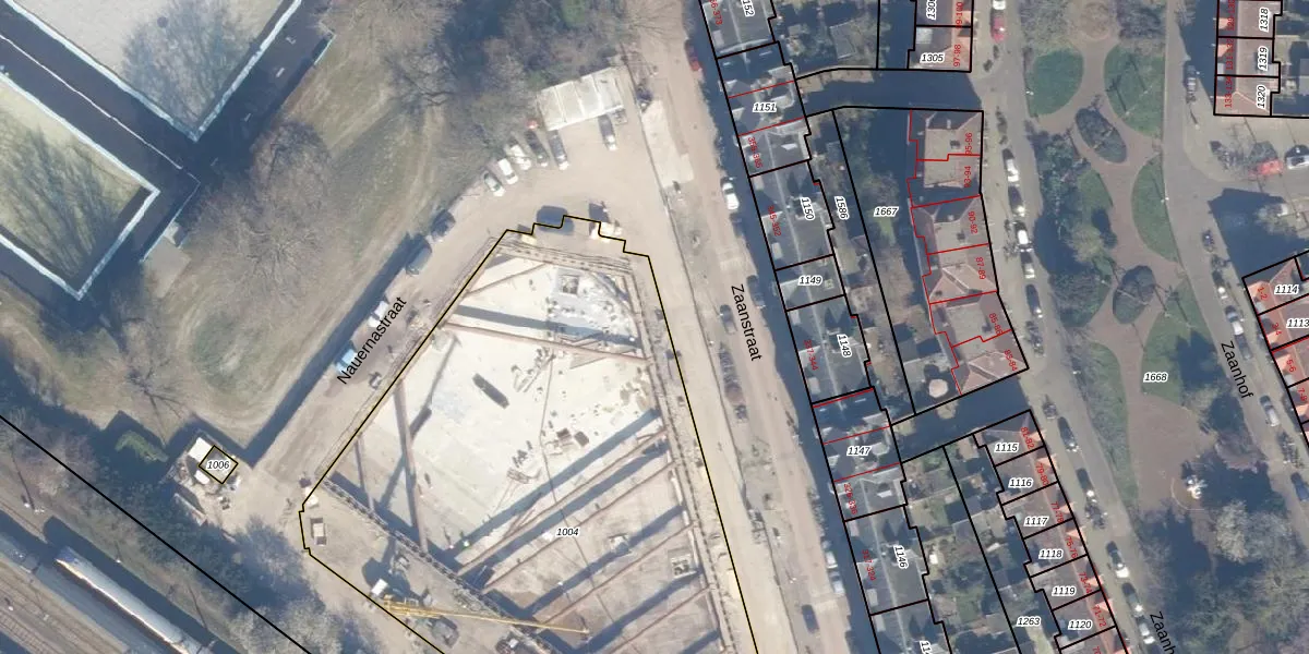 Het perceel waarop Zaanstraat 485 staat heeft een oppervlakte van 4041 m². Dit is een zeer groot perceel. De perceeloppervlakte wordt geregistreerd door het Kadaster. Gedetailleerde informatie over de maten van dit perceel kunt u vinden in het rapport Kadastrale kaart met maatvoering van Zaanstraat 485.