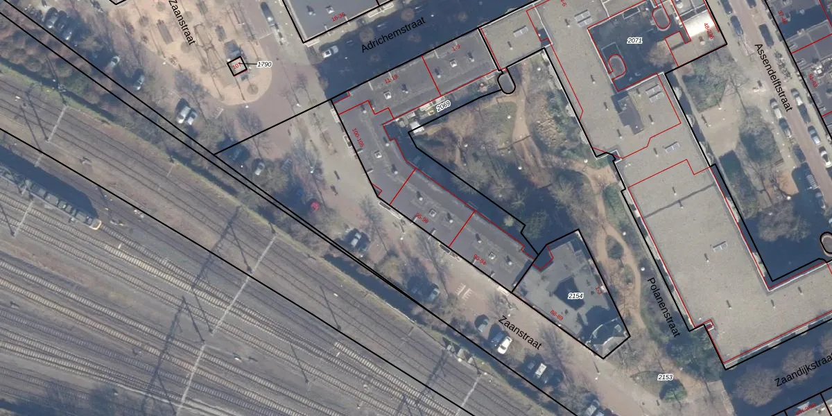Het perceel waarop Zaanstraat 96 staat heeft een oppervlakte van 1268 m². Dit is een zeer groot perceel. De perceeloppervlakte wordt geregistreerd door het Kadaster. Gedetailleerde informatie over de maten van dit perceel kunt u vinden in het rapport Kadastrale kaart met maatvoering van Zaanstraat 96.