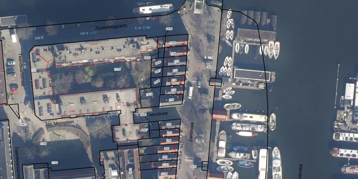 Zandhoek 9-H is gelegen op kadastraal perceel ASD09M275. Deze kadastrale aanduiding is uniek en wordt gebruikt door het Kadaster om eigendomsrechten en andere zakelijke rechten vast te leggen. Het perceel maakt onderdeel uit van de kadastrale gemeente Amsterdam.