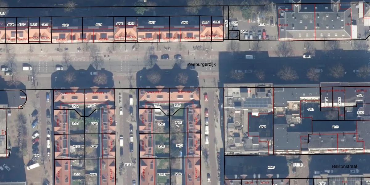 Het perceel waarop Zeeburgerdijk 108 staat heeft een oppervlakte van 187 m². Dit is een middelgroot perceel. De perceeloppervlakte wordt geregistreerd door het Kadaster. Gedetailleerde informatie over de maten van dit perceel kunt u vinden in het rapport Kadastrale kaart met maatvoering van Zeeburgerdijk 108.