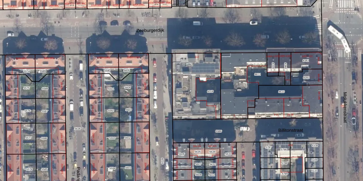 Het perceel waarop Zeeburgerdijk 112-R staat heeft een oppervlakte van 976 m². Dit is een groot perceel. De perceeloppervlakte wordt geregistreerd door het Kadaster. Gedetailleerde informatie over de maten van dit perceel kunt u vinden in het rapport Kadastrale kaart met maatvoering van Zeeburgerdijk 112-R.