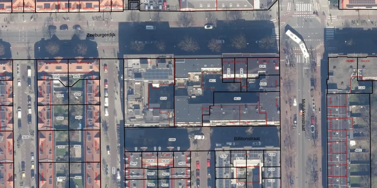 Het perceel waarop Zeeburgerdijk 114-G staat heeft een oppervlakte van 846 m². Dit is een groot perceel. De perceeloppervlakte wordt geregistreerd door het Kadaster. Gedetailleerde informatie over de maten van dit perceel kunt u vinden in het rapport Kadastrale kaart met maatvoering van Zeeburgerdijk 114-G.