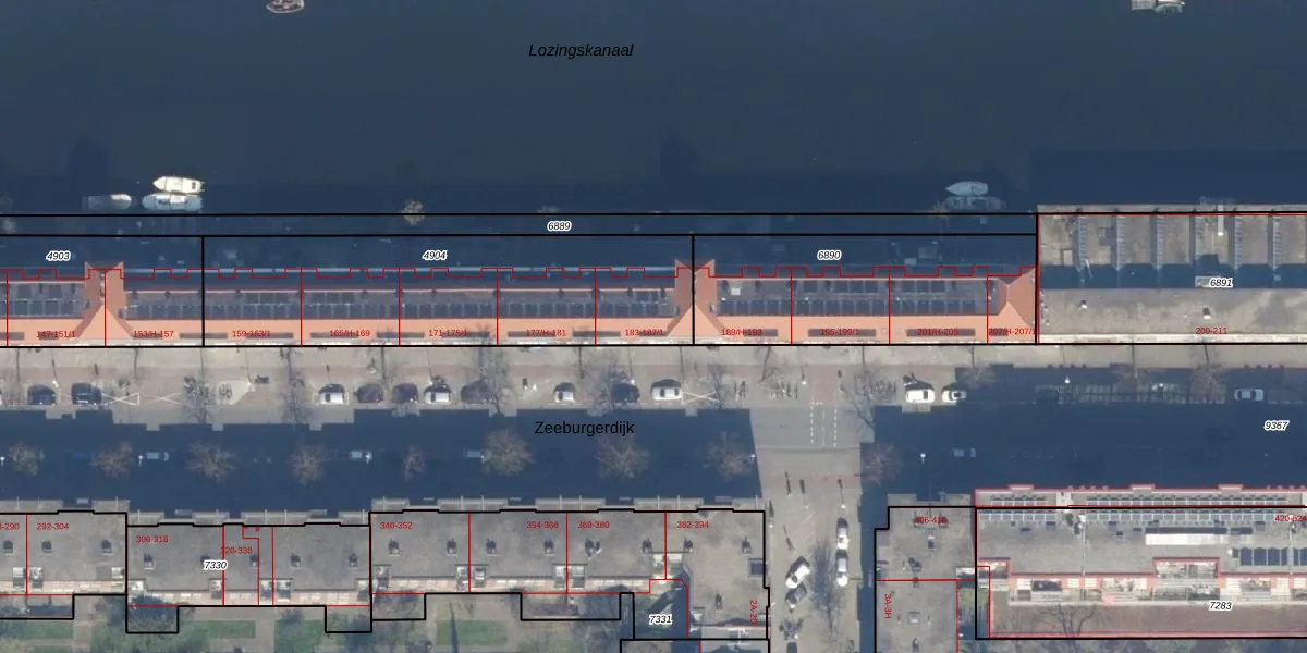 Zeeburgerdijk 185-1 is gelegen op kadastraal perceel ASD19W4904. Deze kadastrale aanduiding is uniek en wordt gebruikt door het Kadaster om eigendomsrechten en andere zakelijke rechten vast te leggen. Het perceel maakt onderdeel uit van de kadastrale gemeente Amsterdam.
