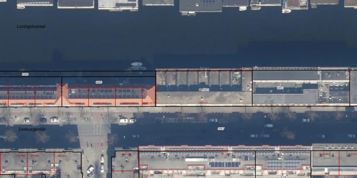 Het adres ligt op het perceel ASD19-W-6891, dat zich in de kadastrale gemeente Amsterdam bevindt. De gemiddelde perceelgrootte in Amsterdam is 1563,05 m². Dit perceel is kleiner: de perceeloppervlakte bedraagt 1080 m². Het kleinste perceel in de kadastrale gemeente is 0 m² groot. De grootste perceeloppervlakte is 17,9 ha. Er zijn 87 adressen aanwezig op het perceel. De laatste wijziging in het de Basisregistratie Kadaster (BRK) was op 05-02-2007.