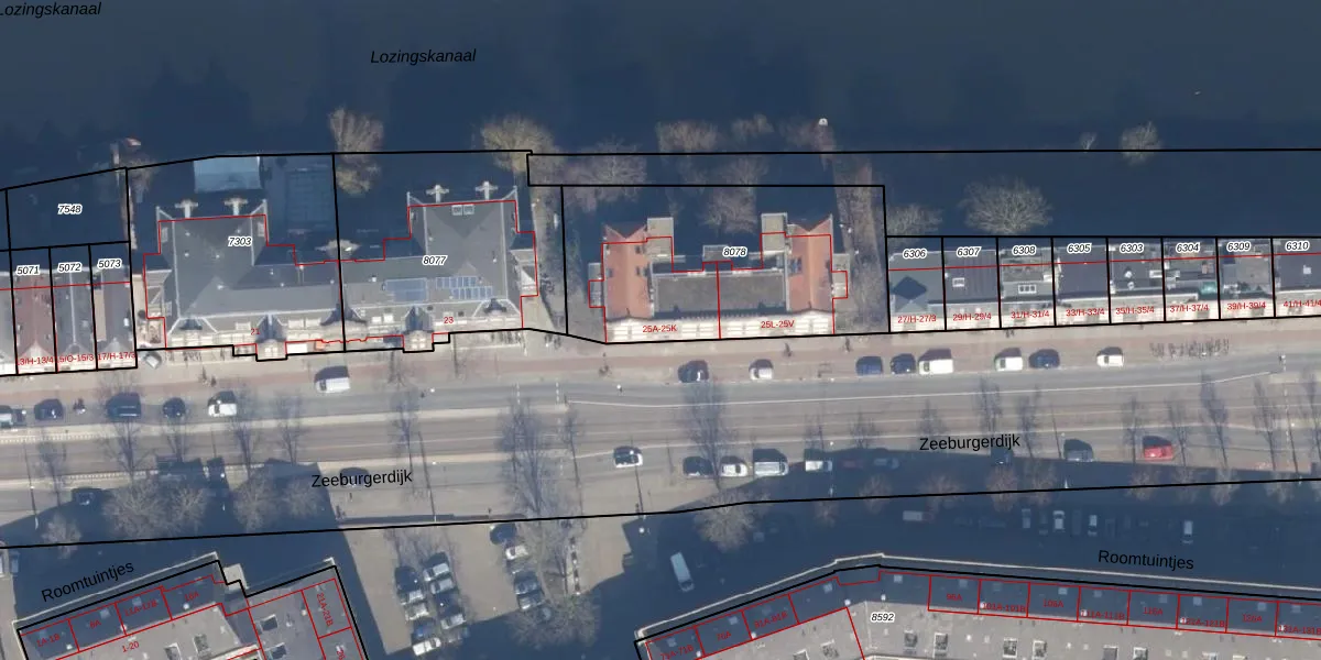 Zeeburgerdijk 25-A is gelegen op kadastraal perceel ASD02A8078. Deze kadastrale aanduiding is uniek en wordt gebruikt door het Kadaster om eigendomsrechten en andere zakelijke rechten vast te leggen. Het perceel maakt onderdeel uit van de kadastrale gemeente Amsterdam.
