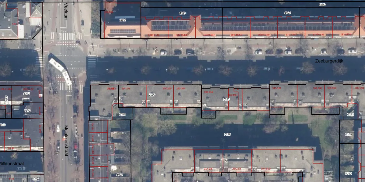 Het perceel waarop Zeeburgerdijk 294 staat heeft een oppervlakte van 619 m². Dit is een groot perceel. De perceeloppervlakte wordt geregistreerd door het Kadaster. Gedetailleerde informatie over de maten van dit perceel kunt u vinden in het rapport Kadastrale kaart met maatvoering van Zeeburgerdijk 294.