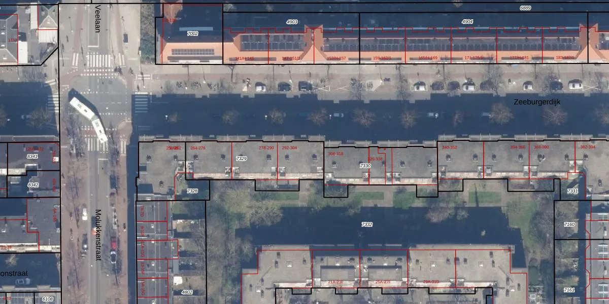 Het perceel waarop Zeeburgerdijk 298 staat heeft een oppervlakte van 619 m². Dit is een groot perceel. De perceeloppervlakte wordt geregistreerd door het Kadaster. Gedetailleerde informatie over de maten van dit perceel kunt u vinden in het rapport Kadastrale kaart met maatvoering van Zeeburgerdijk 298.