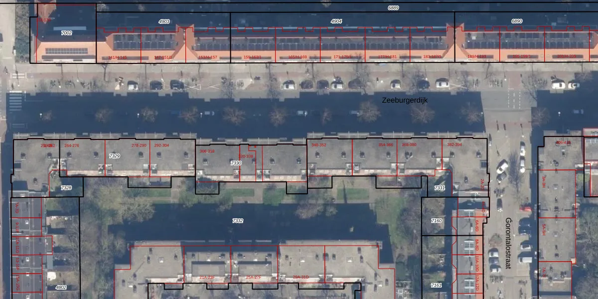 Zeeburgerdijk 338 is gelegen op kadastraal perceel ASD19W7330. Deze kadastrale aanduiding is uniek en wordt gebruikt door het Kadaster om eigendomsrechten en andere zakelijke rechten vast te leggen. Het perceel maakt onderdeel uit van de kadastrale gemeente Amsterdam.