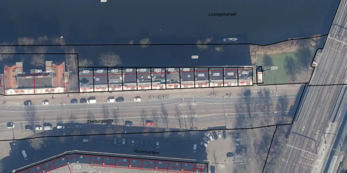 Het perceel waarop Zeeburgerdijk 39-H staat heeft een oppervlakte van 103 m². Dit is een middelgroot perceel. De perceeloppervlakte wordt geregistreerd door het Kadaster. Gedetailleerde informatie over de maten van dit perceel kunt u vinden in het rapport Kadastrale kaart met maatvoering van Zeeburgerdijk 39-H.