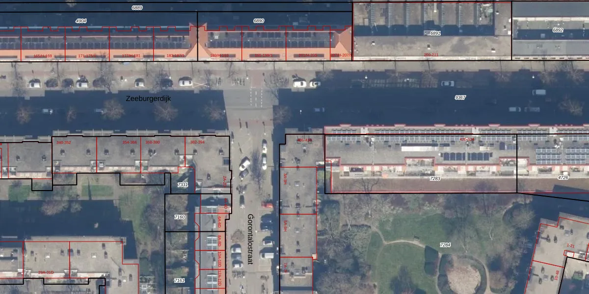 Het perceel waarop Zeeburgerdijk 410 staat heeft een oppervlakte van 4978 m². Dit is een zeer groot perceel. De perceeloppervlakte wordt geregistreerd door het Kadaster. Gedetailleerde informatie over de maten van dit perceel kunt u vinden in het rapport Kadastrale kaart met maatvoering van Zeeburgerdijk 410.