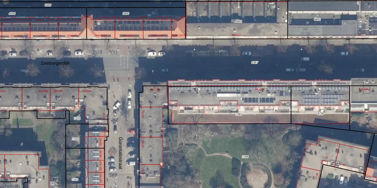 Het adres is gelegen op perceel 7283 in de sectie W en de kadastrale gemeente Amsterdam. De kadastrale aanduiding is aldus ASD19-W-7283. De gemiddelde perceelgrootte in Amsterdam is 1563,61 m². Dit perceel is kleiner: de perceeloppervlakte bedraagt 1306 m². Het grootste perceel in de kadastrale gemeente is 17,9 ha. Het kleinste perceel heeft een oppervlakte van 0 m². Op het perceel zijn 33 adressen aanwezig. De laatste wijziging in het de Basisregistratie Kadaster (BRK) was op 05-02-2007.