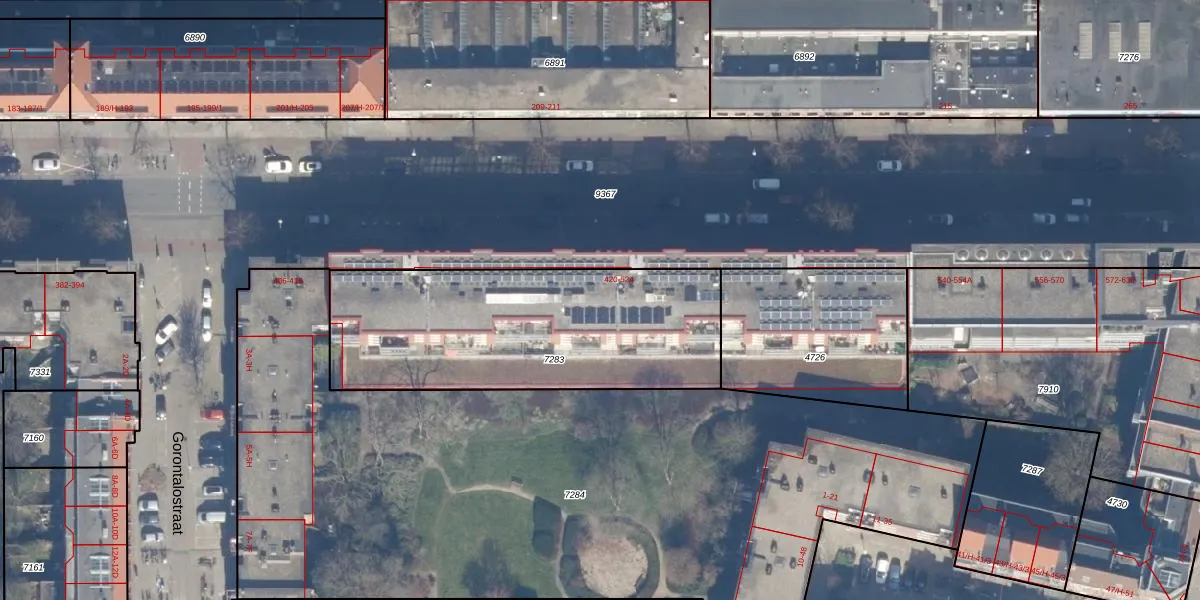 Het adres is gelegen op perceel 7283 in de sectie W en de kadastrale gemeente Amsterdam. De kadastrale aanduiding is aldus ASD19-W-7283. De gemiddelde perceelgrootte in Amsterdam is 1563,05 m². Dit perceel is kleiner: de perceeloppervlakte bedraagt 1306 m². Het kleinste perceel in de kadastrale gemeente is 0 m² groot. De grootste perceeloppervlakte is 17,9 ha. Er zijn 33 adressen aanwezig op het perceel. In de Basisregistratie Kadaster (BRK) werden de grenzen van het perceel geregistreerd op 05-02-2007.