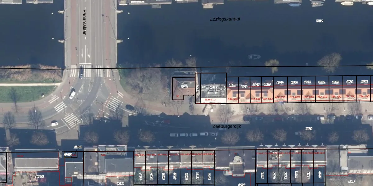 Zeeburgerdijk 53 is gelegen op kadastraal perceel ASD15S7283. Deze kadastrale aanduiding is uniek en wordt gebruikt door het Kadaster om eigendomsrechten en andere zakelijke rechten vast te leggen. Het perceel maakt onderdeel uit van de kadastrale gemeente Amsterdam.