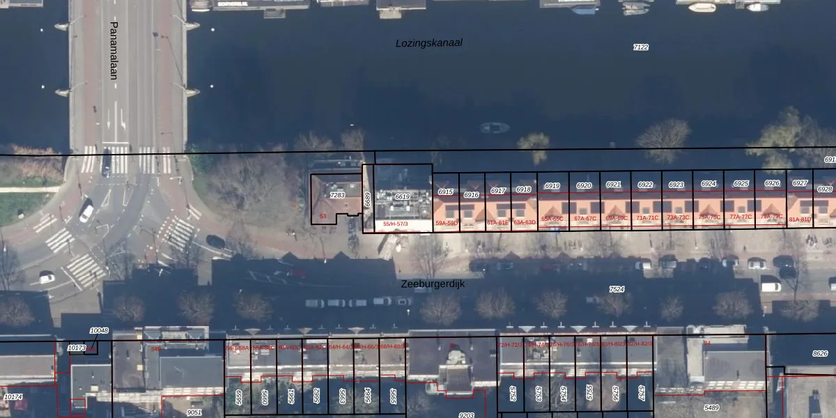 Het perceel waarop Zeeburgerdijk 55-R staat heeft een oppervlakte van 234 m². Dit is een middelgroot perceel. De perceeloppervlakte wordt geregistreerd door het Kadaster. Gedetailleerde informatie over de maten van dit perceel kunt u vinden in het rapport Kadastrale kaart met maatvoering van Zeeburgerdijk 55-R.