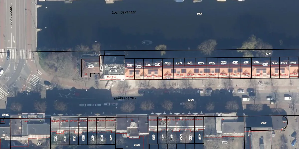 Het perceel waarop Zeeburgerdijk 61-E staat heeft een oppervlakte van 87 m². Dit is een klein perceel. De perceeloppervlakte wordt geregistreerd door het Kadaster. Gedetailleerde informatie over de maten van dit perceel kunt u vinden in het rapport Kadastrale kaart met maatvoering van Zeeburgerdijk 61-E.