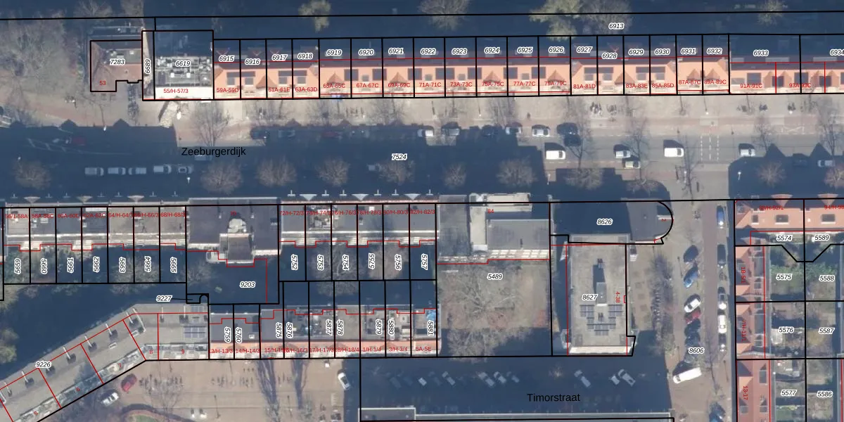 Zeeburgerdijk 82-3 is gelegen op kadastraal perceel ASD15S5757. Deze kadastrale aanduiding is uniek en wordt gebruikt door het Kadaster om eigendomsrechten en andere zakelijke rechten vast te leggen. Het perceel maakt onderdeel uit van de kadastrale gemeente Amsterdam.