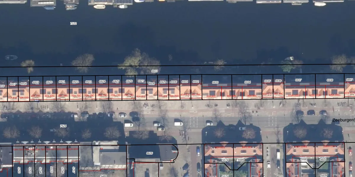 Het perceel waarop Zeeburgerdijk 85-D staat heeft een oppervlakte van 87 m². Dit is een klein perceel. De perceeloppervlakte wordt geregistreerd door het Kadaster. Gedetailleerde informatie over de maten van dit perceel kunt u vinden in het rapport Kadastrale kaart met maatvoering van Zeeburgerdijk 85-D.