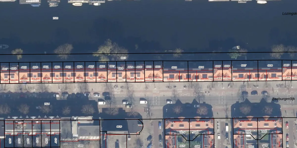 Het perceel waarop Zeeburgerdijk 87-C staat heeft een oppervlakte van 87 m². Dit is een klein perceel. De perceeloppervlakte wordt geregistreerd door het Kadaster. Gedetailleerde informatie over de maten van dit perceel kunt u vinden in het rapport Kadastrale kaart met maatvoering van Zeeburgerdijk 87-C.