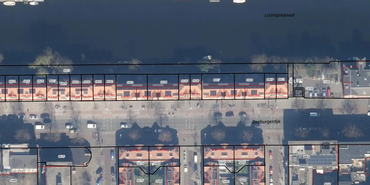 Het perceel waarop Zeeburgerdijk 97-B staat heeft een oppervlakte van 87 m². Dit is een klein perceel. De perceeloppervlakte wordt geregistreerd door het Kadaster. Gedetailleerde informatie over de maten van dit perceel kunt u vinden in het rapport Kadastrale kaart met maatvoering van Zeeburgerdijk 97-B.