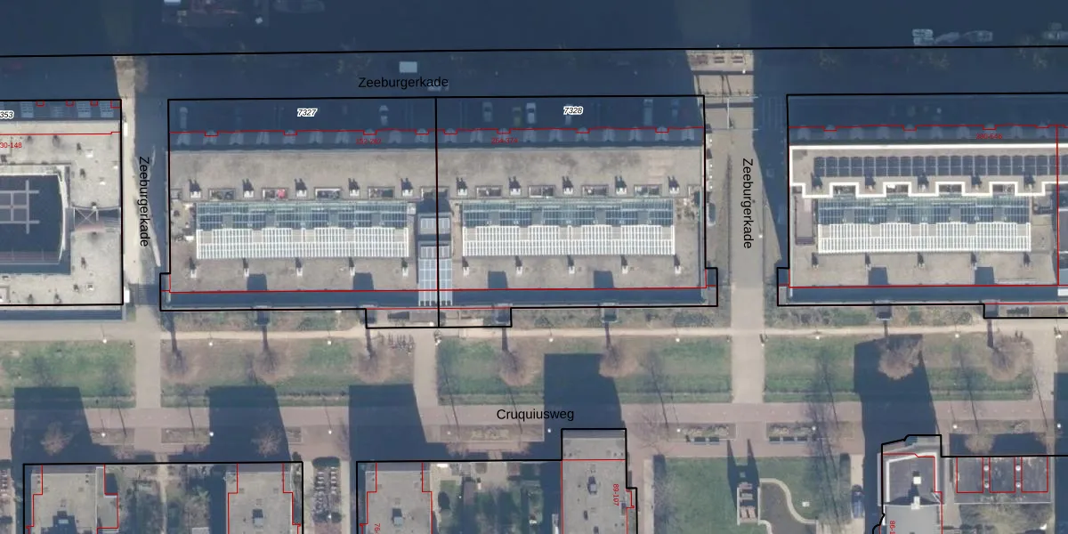 Het perceel waarop Zeeburgerkade 374 staat heeft een oppervlakte van 2052 m². Dit is een zeer groot perceel. De perceeloppervlakte wordt geregistreerd door het Kadaster. Gedetailleerde informatie over de maten van dit perceel kunt u vinden in het rapport Kadastrale kaart met maatvoering van Zeeburgerkade 374.