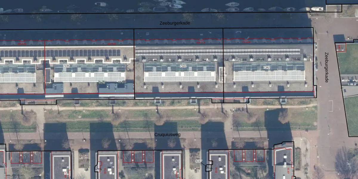 Het adres is gelegen op perceel 7341 in de sectie A en de kadastrale gemeente Amsterdam. De kadastrale aanduiding is aldus ASD02-A-7341. Het perceel is kleiner dan gemiddeld in Amsterdam. Het perceel is 1994 m² groot, terwijl het gemiddelde ligt op 2767,13 m². Het kleinste perceel in de kadastrale gemeente is 0 m² groot. De grootste perceeloppervlakte is 14,3 ha. Er zijn 56 adressen aanwezig op het perceel. In de Basisregistratie Kadaster (BRK) werden de grenzen van het perceel geregistreerd op 24-10-2007.