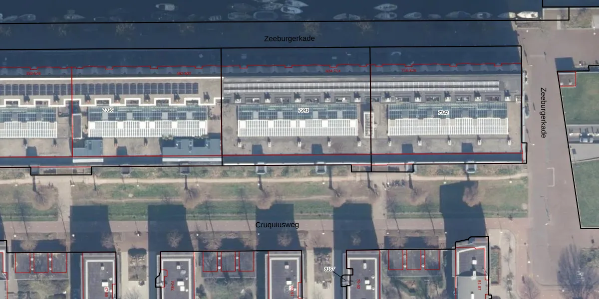 Het adres is gelegen op perceel 7341 in de sectie A en de kadastrale gemeente Amsterdam. De kadastrale aanduiding is aldus ASD02-A-7341. Het perceel is kleiner dan gemiddeld in Amsterdam. Het perceel is 1994 m² groot, terwijl het gemiddelde ligt op 2767,13 m². Het kleinste perceel in de kadastrale gemeente is 0 m² groot. De grootste perceeloppervlakte is 14,3 ha. Op het perceel zijn 56 adressen aanwezig. De huidige grenzen van het perceel zijn digitaal in de Basisregistratie Kadaster (BRK) geregistreerd op 24-10-2007.