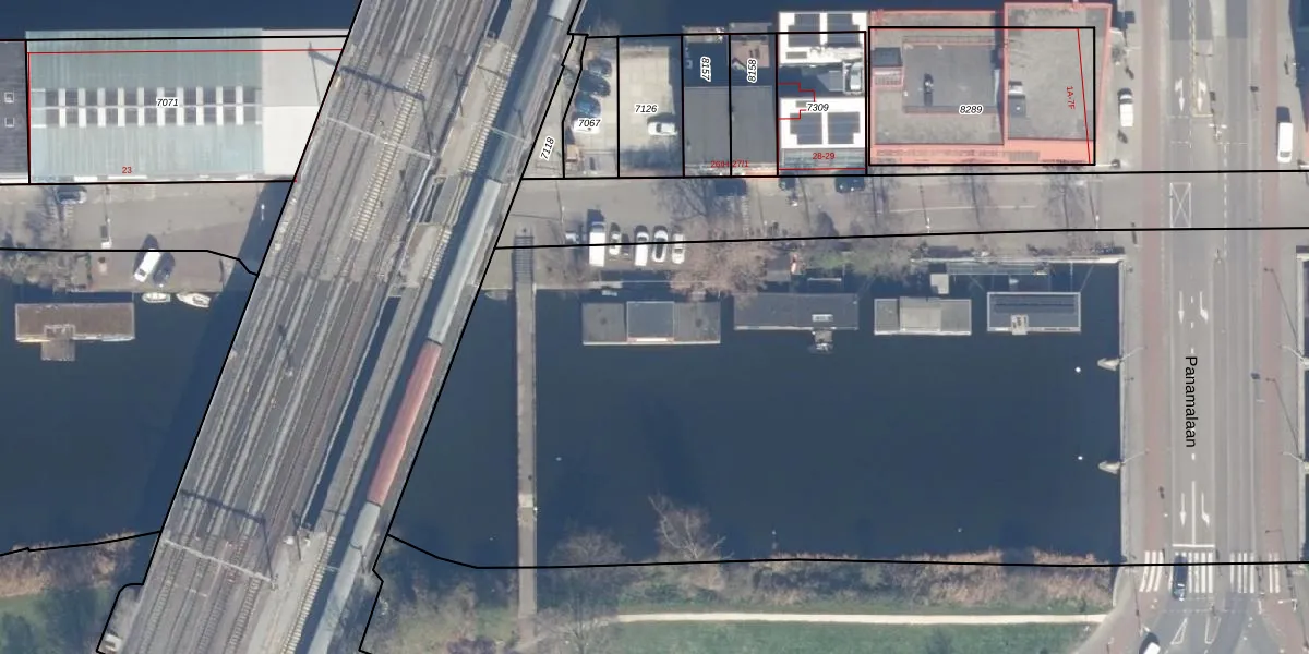 Het perceel waarop het adres ligt is ASD02-A-7122. De afkorting 'ASD02' staat voor kadastrale gemeente Amsterdam. De gemiddelde perceeloppervlakte in de kadastrale gemeente Amsterdam is 2763,93 m². Dit perceel is met zijn 2,5 ha dus groter dan gemiddeld. De grootste perceeloppervlakte in de kadastrale gemeente is 14,3 ha. De kleinste oppervlakte bedraagt 0 m². Op het perceel zijn 24 adressen aanwezig. In de Basisregistratie Kadaster (BRK) werden de grenzen van het perceel geregistreerd op 17-09-2010.