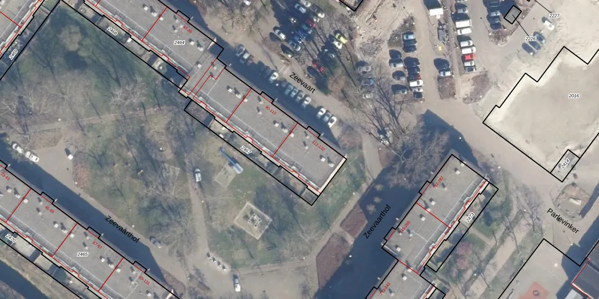 Zeevaart 120 is gelegen op kadastraal perceel ASD36AQ2464. Deze kadastrale aanduiding is uniek en wordt gebruikt door het Kadaster om eigendomsrechten en andere zakelijke rechten vast te leggen. Het perceel maakt onderdeel uit van de kadastrale gemeente Amsterdam.