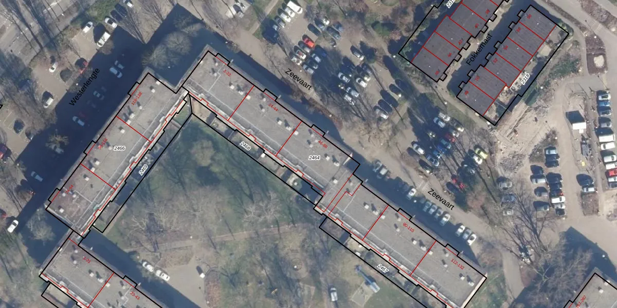 Zeevaart 56 is gelegen op kadastraal perceel ASD36AQ2464. Deze kadastrale aanduiding is uniek en wordt gebruikt door het Kadaster om eigendomsrechten en andere zakelijke rechten vast te leggen. Het perceel maakt onderdeel uit van de kadastrale gemeente Amsterdam.